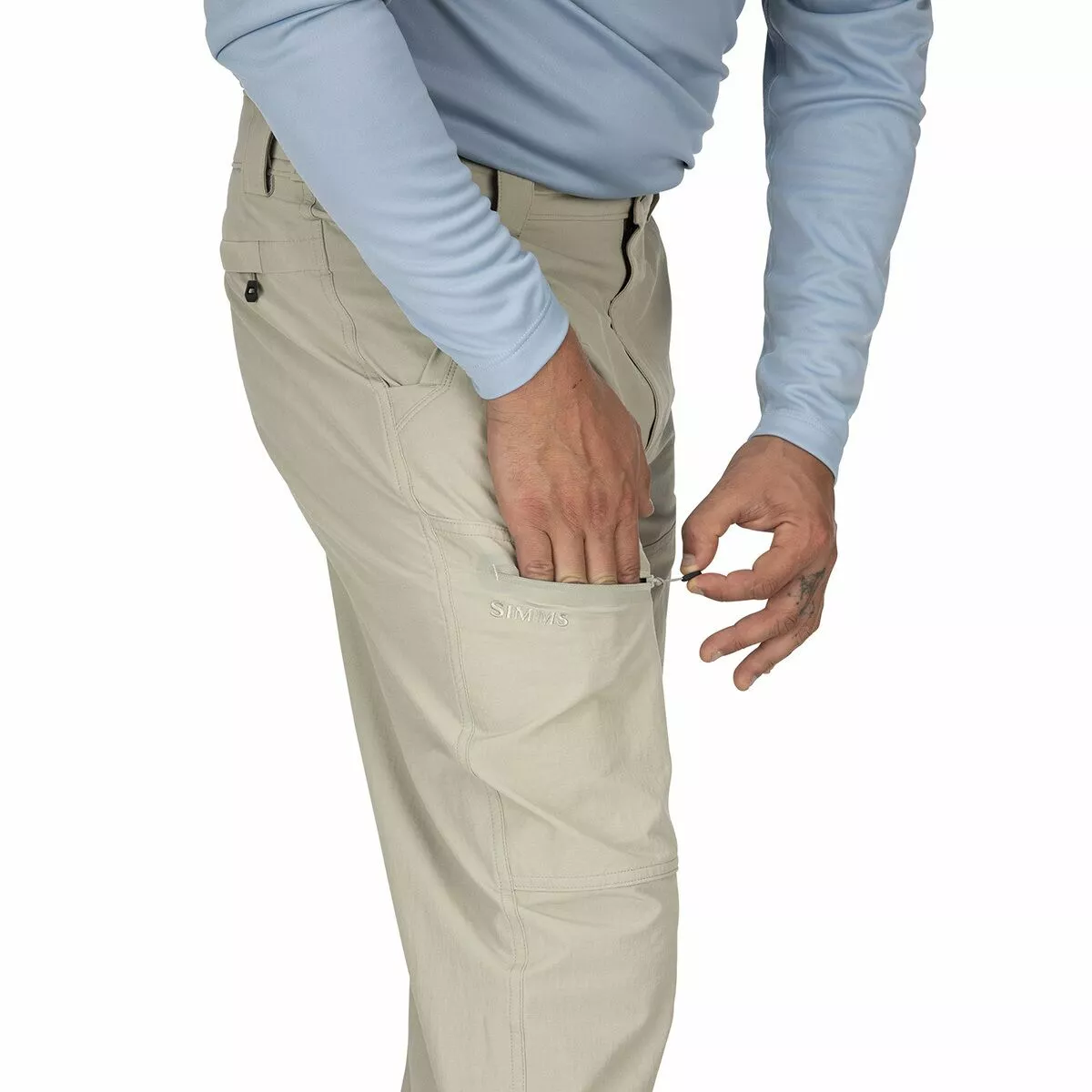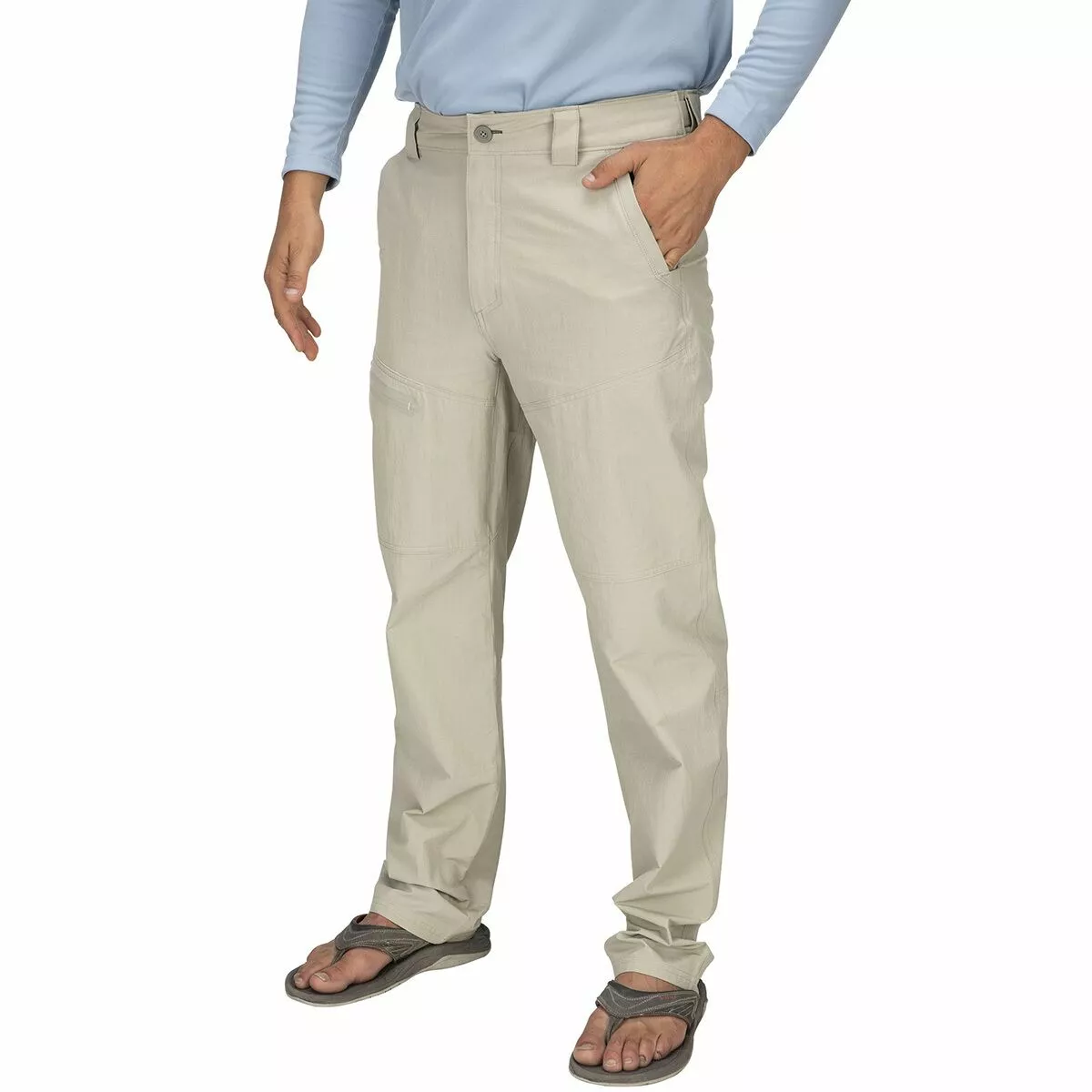 Since there’s no need for your waders, reach for your Simms Men’s Guide Pants on this warm, sunny afternoon. This float-friendly pant features moisture-wicking, quick-drying, and UPF 50-rated fabric that keeps you cool, comfortable, and well-protected from the sun while you maneuver the boat toward another stellar stretch of water. A traditional fit and articulated knees provide ease of movement while a hidden, expandable waist lined with brushed tricot fabric supplies moisture management and comfort. A cargo pocket with hook-and-loop closures, two hand pockets, and zippered thigh and back pockets house your dry shake, fishing license, or other small fly fishing essentials.